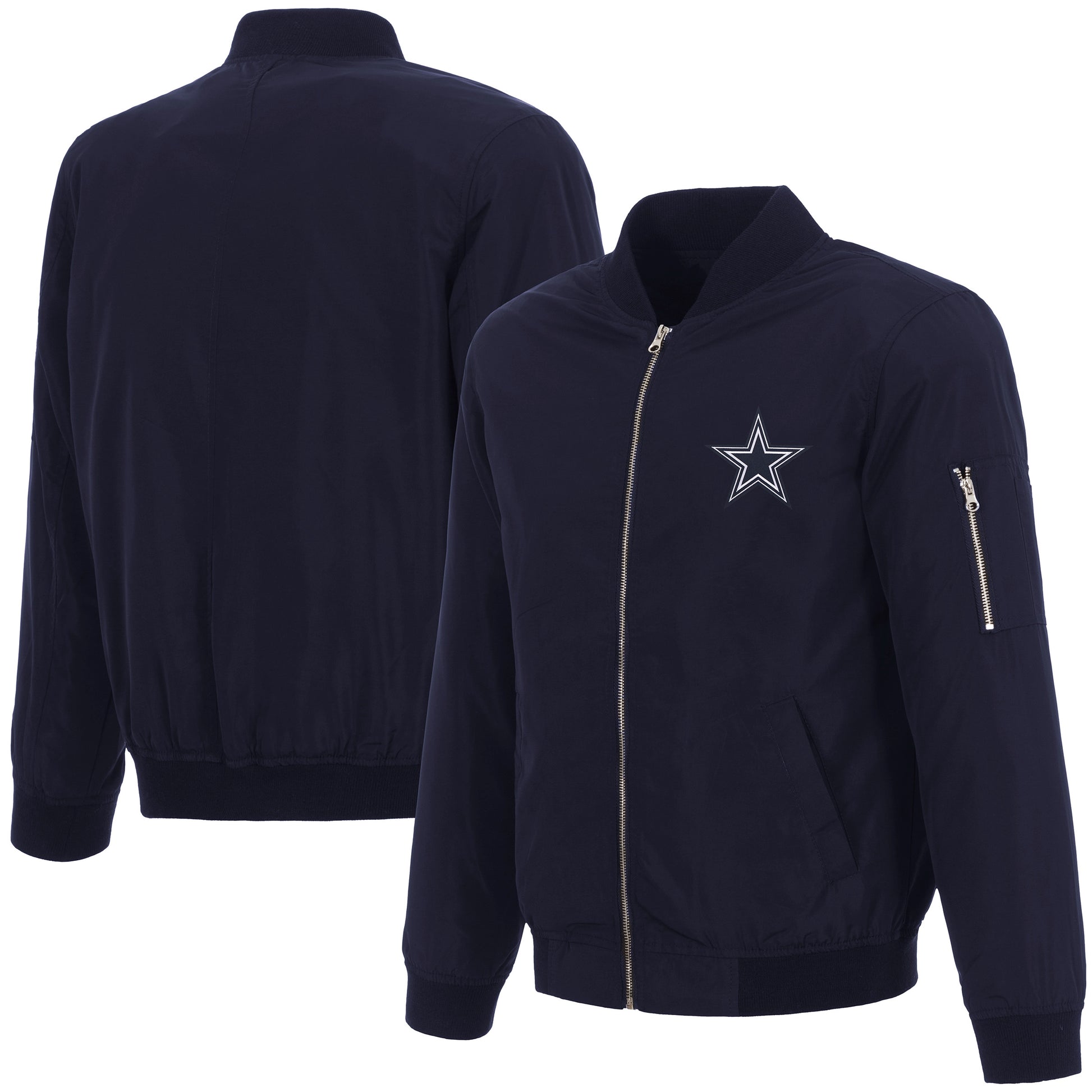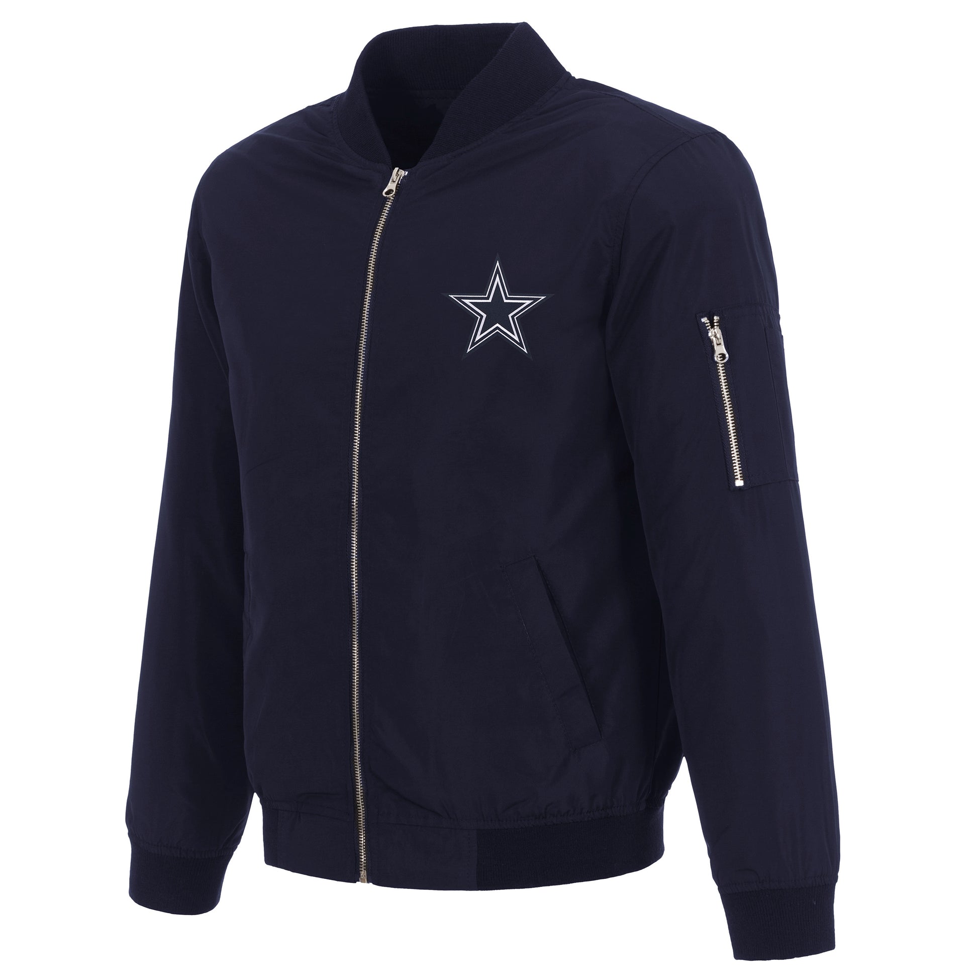 Dallas Cowboys nylon bomber in navy with embroidered logos.